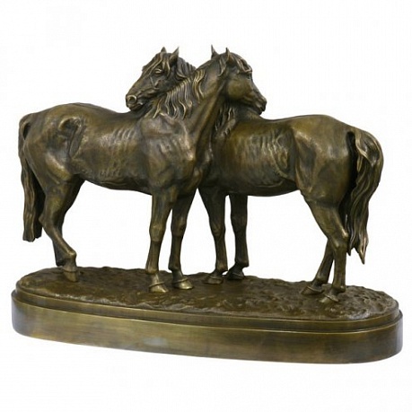 Композиция «Лошади. Вечер» выполнена из натуральной бронзы.